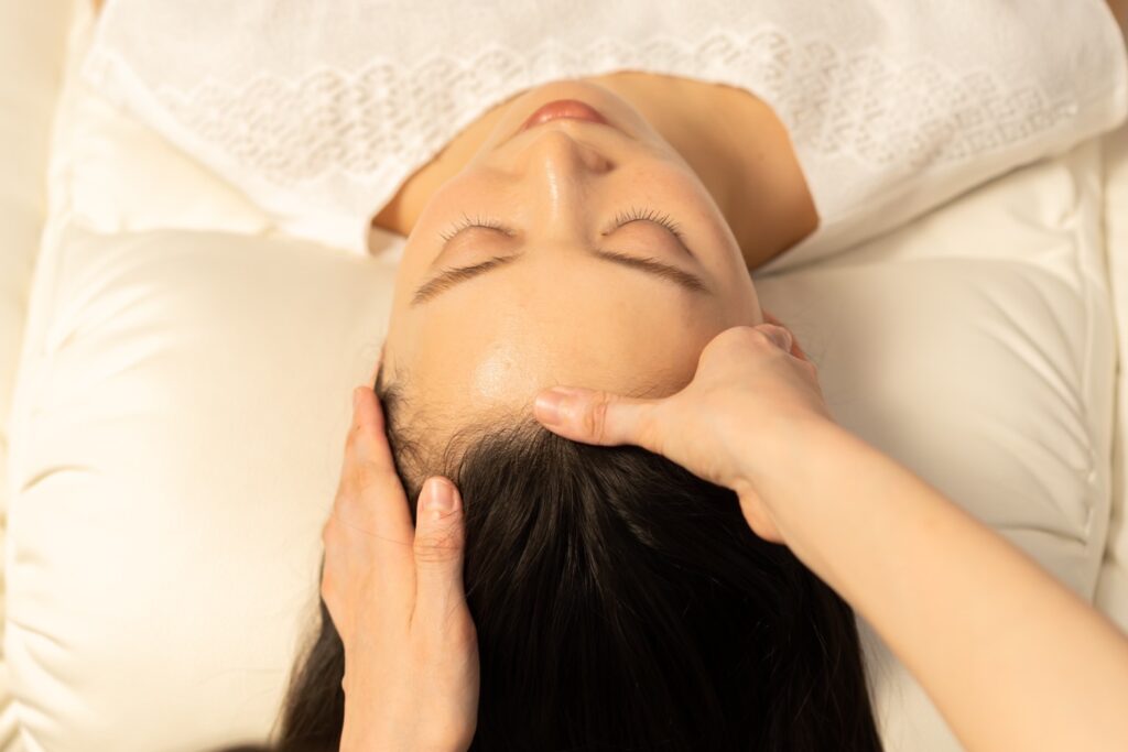 オージャススパでは眉間~額の筋膜をふわっと緩める技術が大人気♪